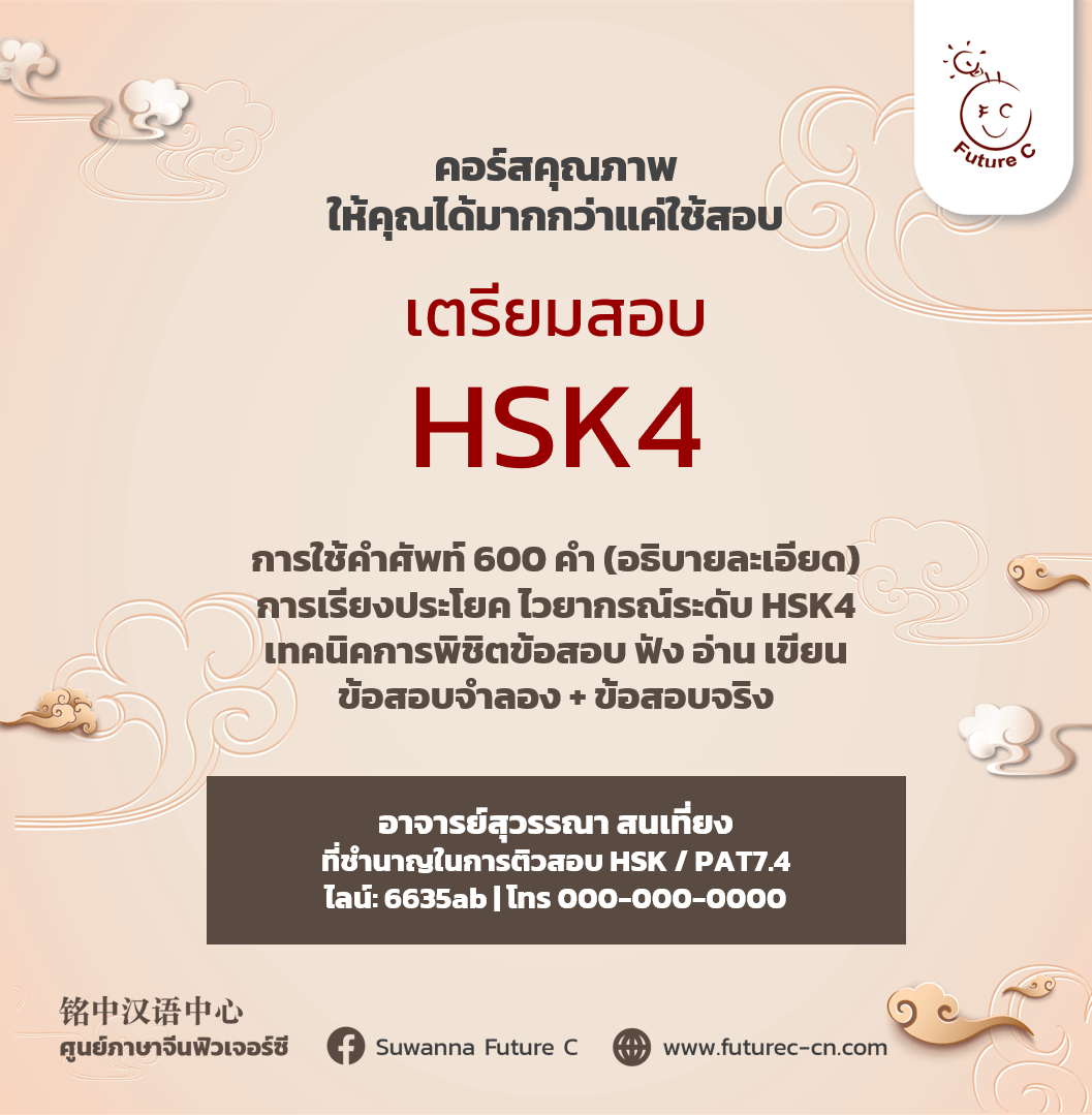 คอร์ส VDO Online “เจาะลึก คำศัพท์ แนวข้อสอบ HSK4″