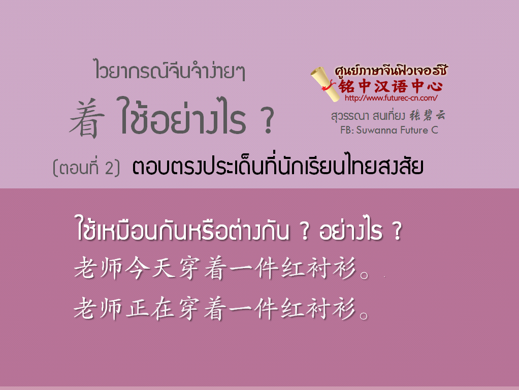 ในตอนที่ 2 นี้ เหล่าซือจะอธิบายการใช้ 着 zhe นัยอื่นๆ ด้วยภาษาไทยที่นักเรียนไทยเข้าใจได้ไม่ยาก