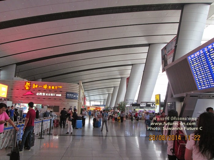 โผล่ขึ้นมาบนดินก็เจอภาพนี้ที่สถานีรถไฟความเร็วสูง นครเทียนจิน สถานีนี้มีแต่รถไฟความเร็วสูงบริการเท่านั้น