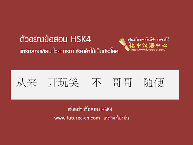 8 ข้อ แนวข้อสอบ HSK4 ทดสอบไวยากรณ์ หมวดการเขียน