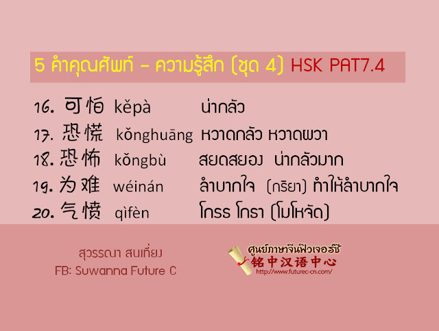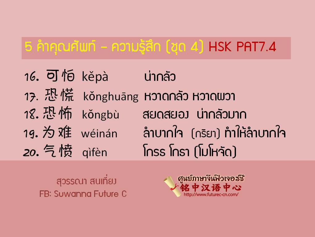 5 คำคุณศัพท์ – ความรู้สึก (ชุด 4) น่ากลัว หวาดกลัว ลำบากใจ โกรธจัด HSK PAT7.4