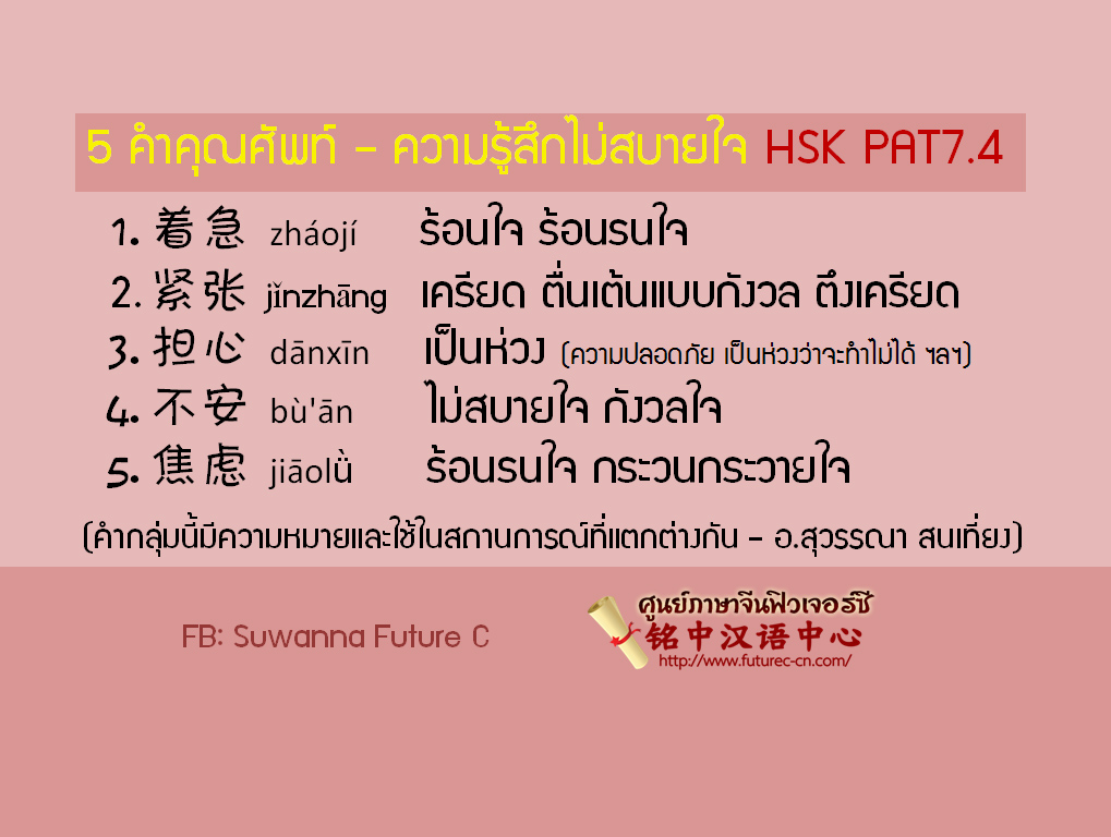 5 คำคุณศัพท์ – ความรู้สึก (ชุด 2) เสียใจ เศร้าใจ เจ็บปวด HSK PAT7.4