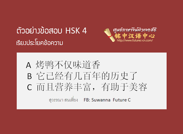 ข้อนี้เป็นข้อสอบที่เหล่าซือสุวรรณาออกเอง เรียงได้หลายแบบ
