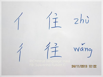 ตัวบน 住 เขียนด้วยหมวดคำที่เรียกว่า 单人旁