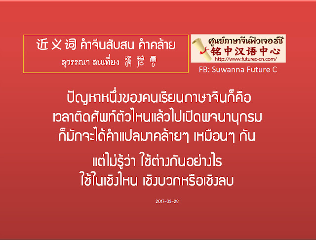คำสับสนจีน คำคล้ายภาษาจีน (近义词) ไวยากรณ์จีน
