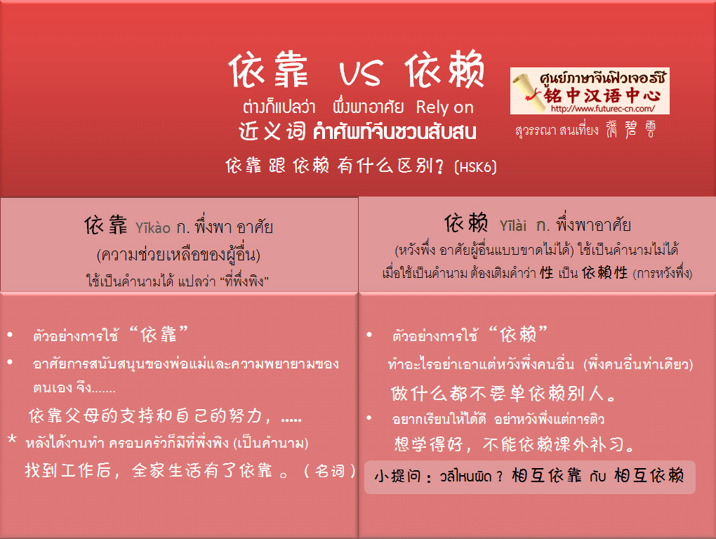 คำจีนชวนสับสน 近义词 :”依靠” 跟 “依赖” พึ่งพาอาศัย Rely on(HSK6)