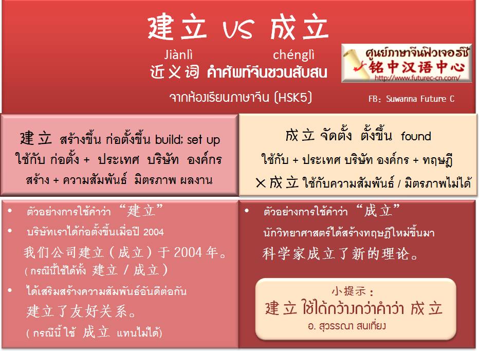 ข้อแตกต่างระหว่างการใช้ 建立 กับ 成立
